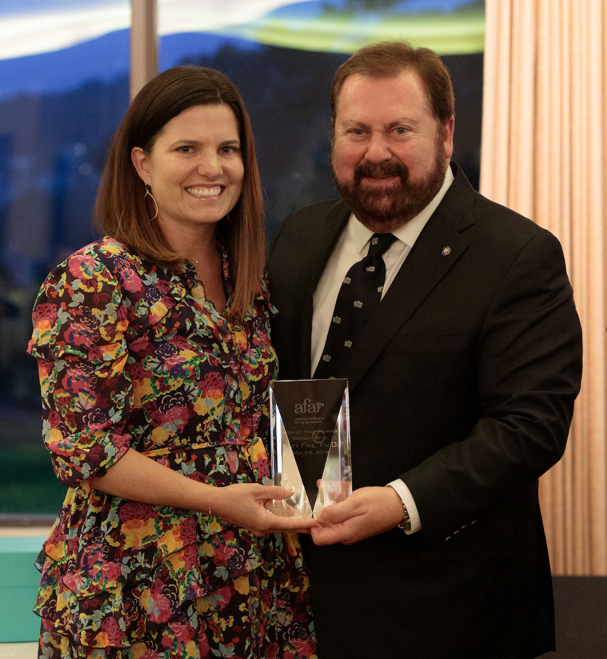 Katy Fike received AFAR's Icon of Aging Award from Dr. Kelvin Davis, USC.